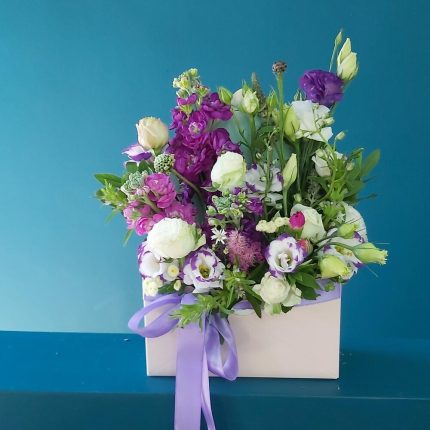 Букет из 9 разноцветных маттиол в стильной упаковке “Персиковый плен”