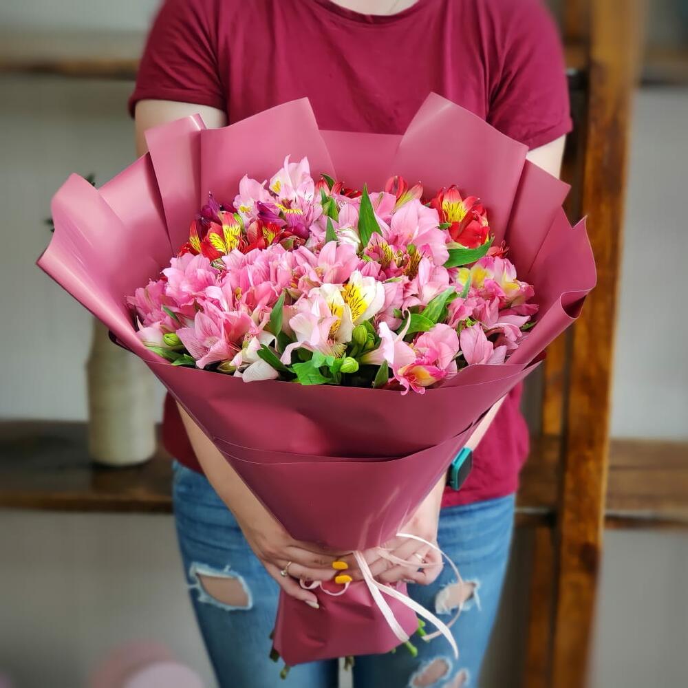 Альстромерия – 17 шт. Лента – 1 шт. Современная упаковка – 1 шт.