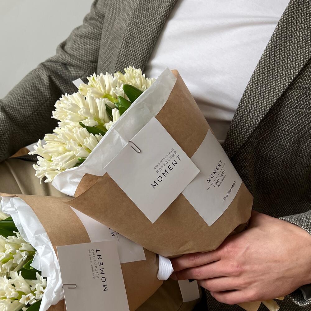 Тишью – 2 шт.Крафт – 2 шт.Карточка для подписи – 1 шт.крафтовый пакет – 1 шт.гиацинты – 9 шт.