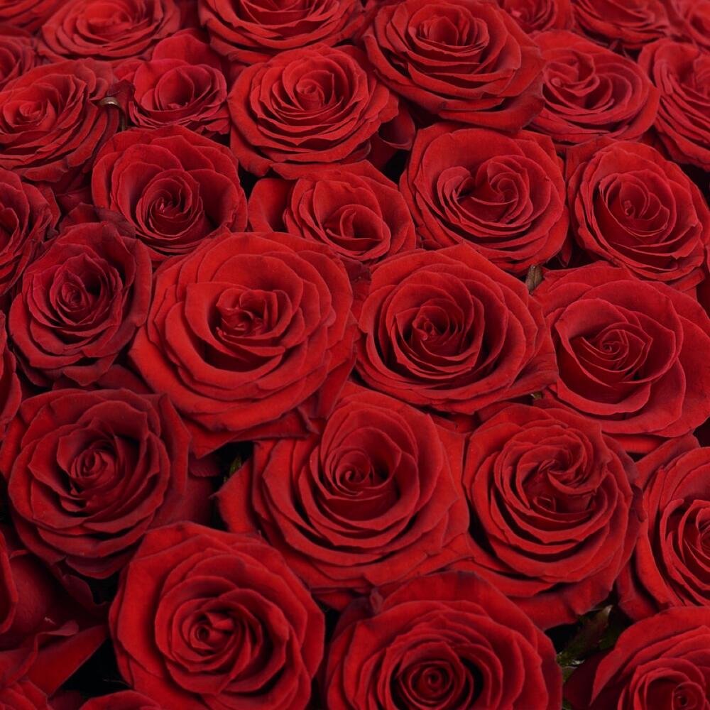 червона троянда – 101 шт. стрічка бархатна – 1 шт.