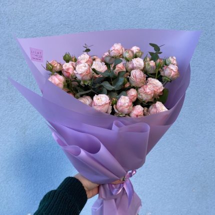 15 кустовых пионовидных роз сильва пинк. Букет 24 KimFlo