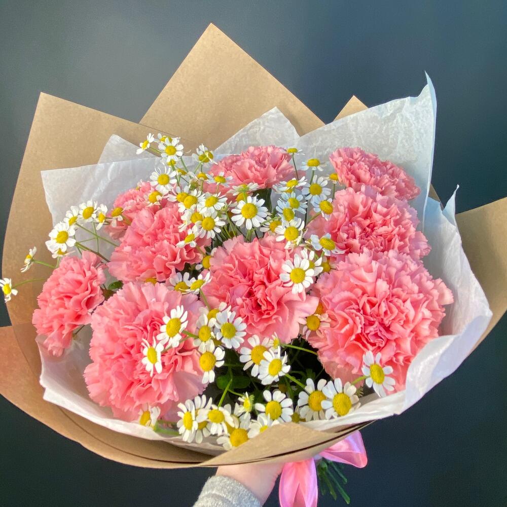 Букет Гвоздики и Ромашки в крафте