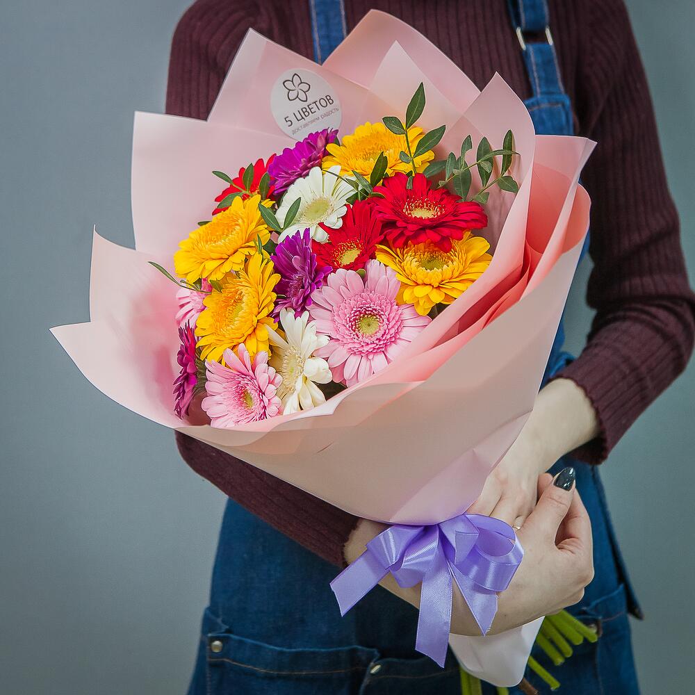 Букет из 15 гербер микс