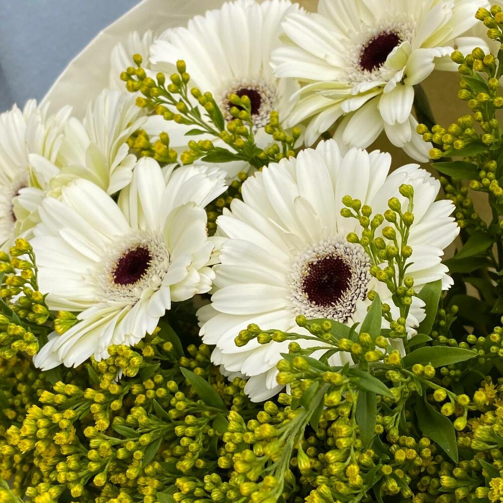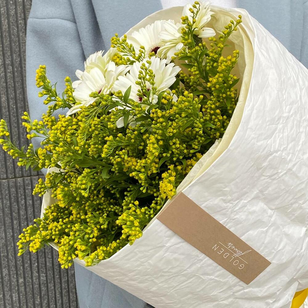 Сочное сочетание герберы и солидаго раскрасит этот день.Продуманная упаковка подчеркивает красоту каждого цветка в букете. Наш стиль: два слоя нежной тишью, крафтовая бумага и обязательно фирменный пакет для доставки. А для больших букетов — транспортировочный бокс.Теплые слова и пожелания вы можете написать в комментарии к заказу — мы дополним букет открыткой.Цветы — это красиво. Не ждите повод, просто подарите сегодня!