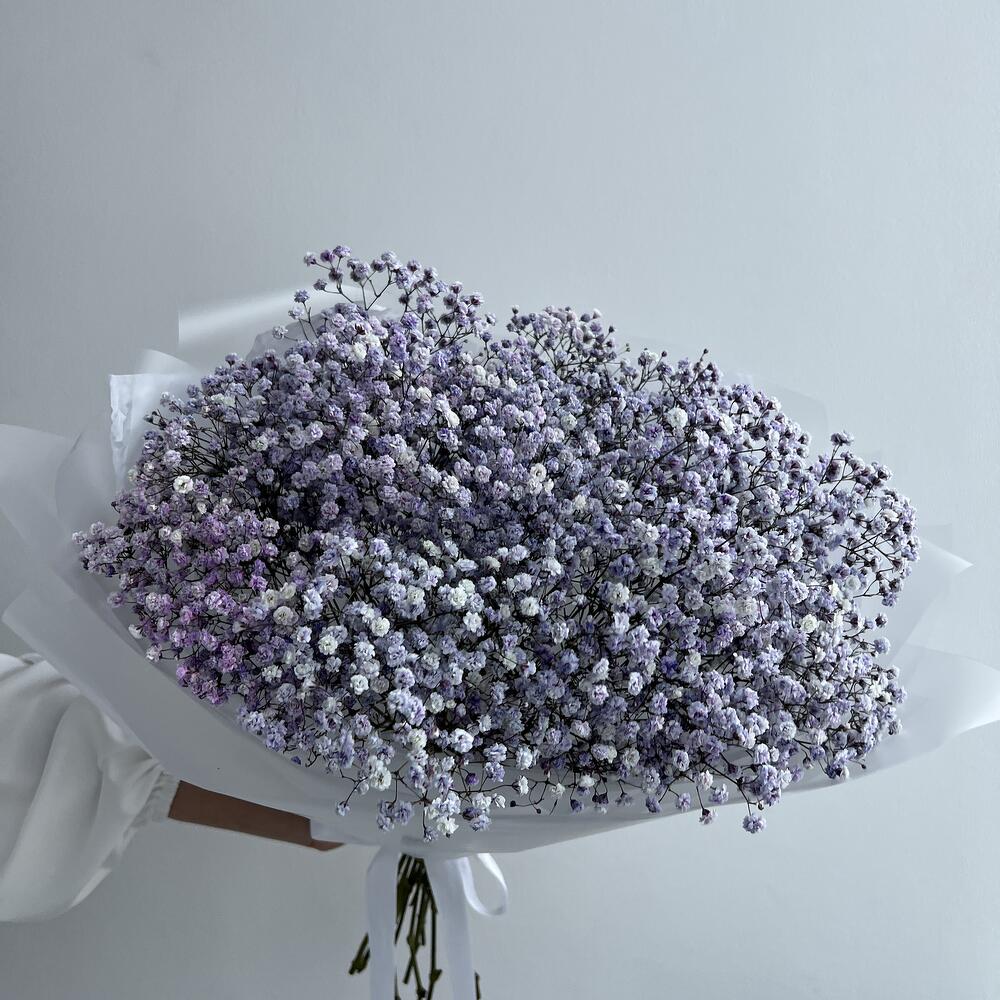 “Сиреневый туман” – композиция из гипсофилы в шляпной коробке