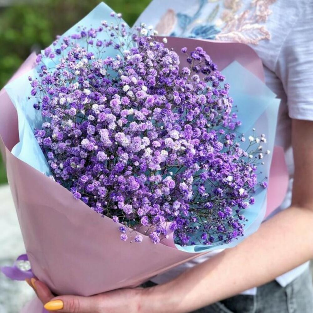 Гипсофила фиолетовая – 3 шт.Тишью – 1 шт.Пленка – 1 шт.Лента – 1 шт.