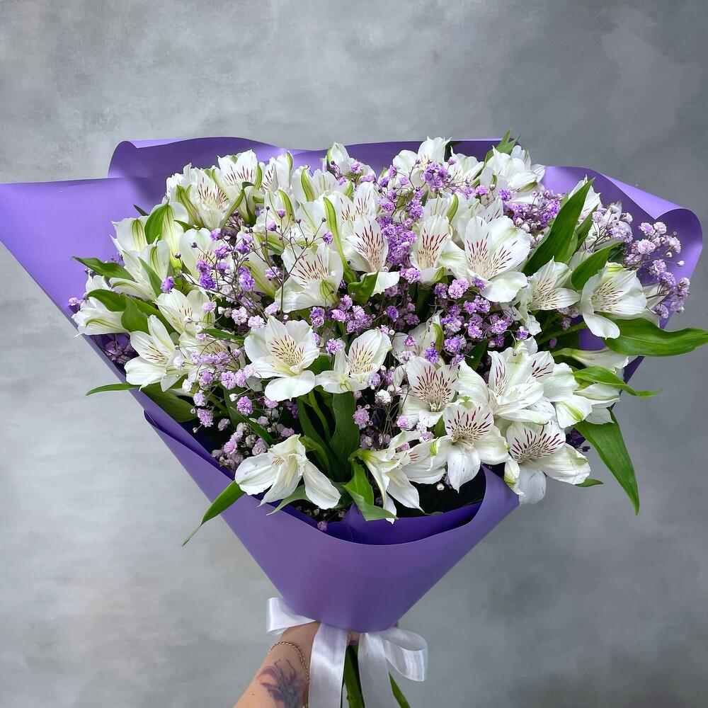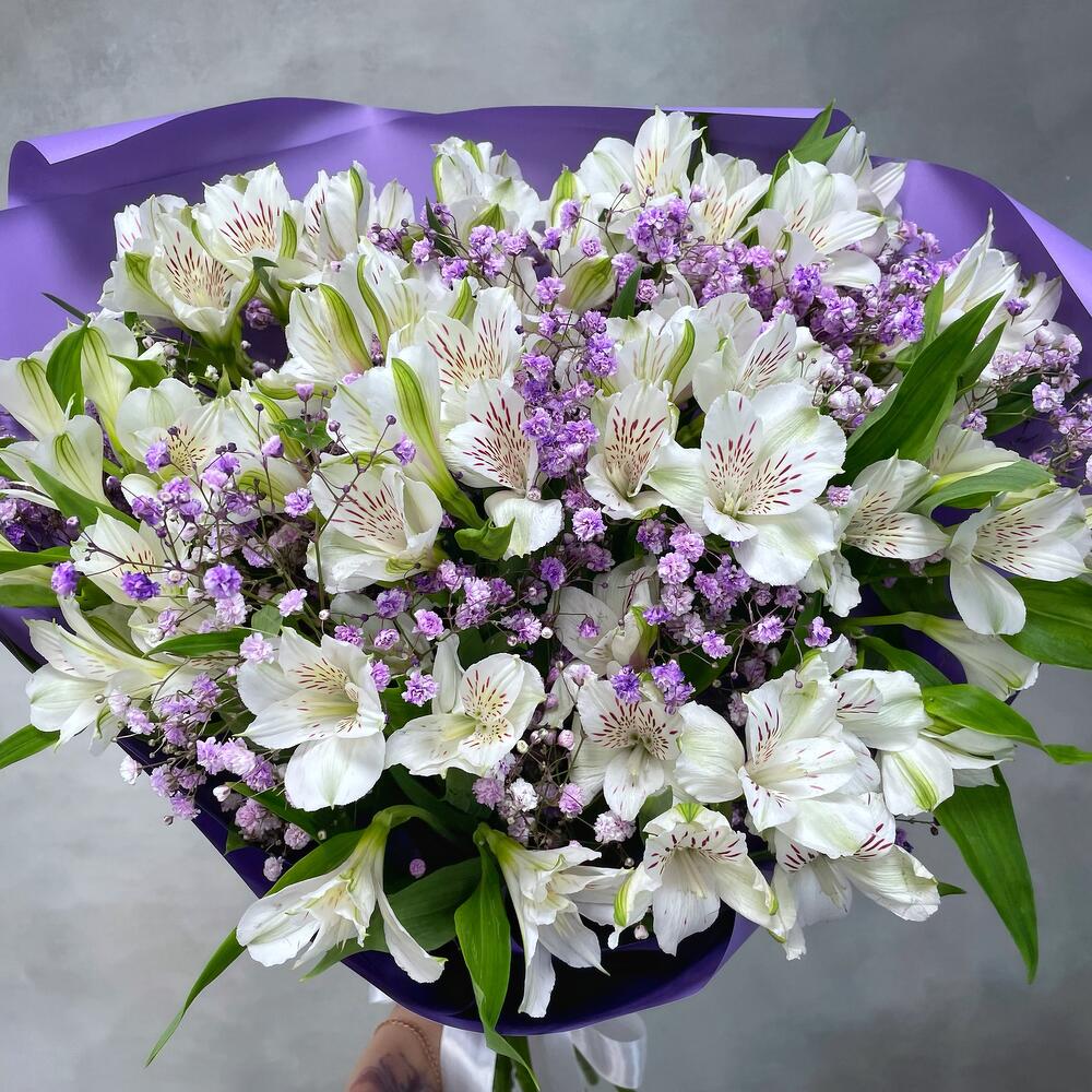 Альстромерия – 9 шт. Упаковка – 1 шт. гипсофила сиреневая – 4 шт.
