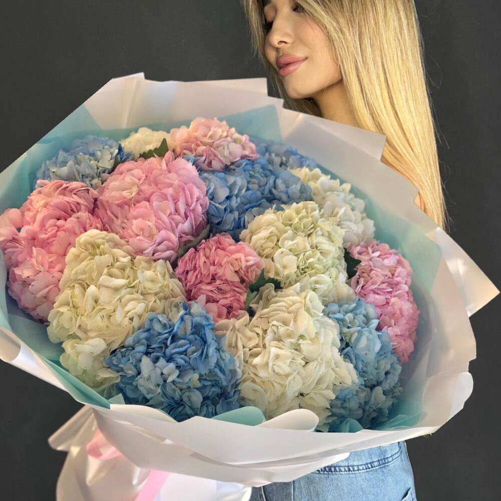 Гвоздики, Гортензии, Лизиантусы, Пионовидные розы, Розы