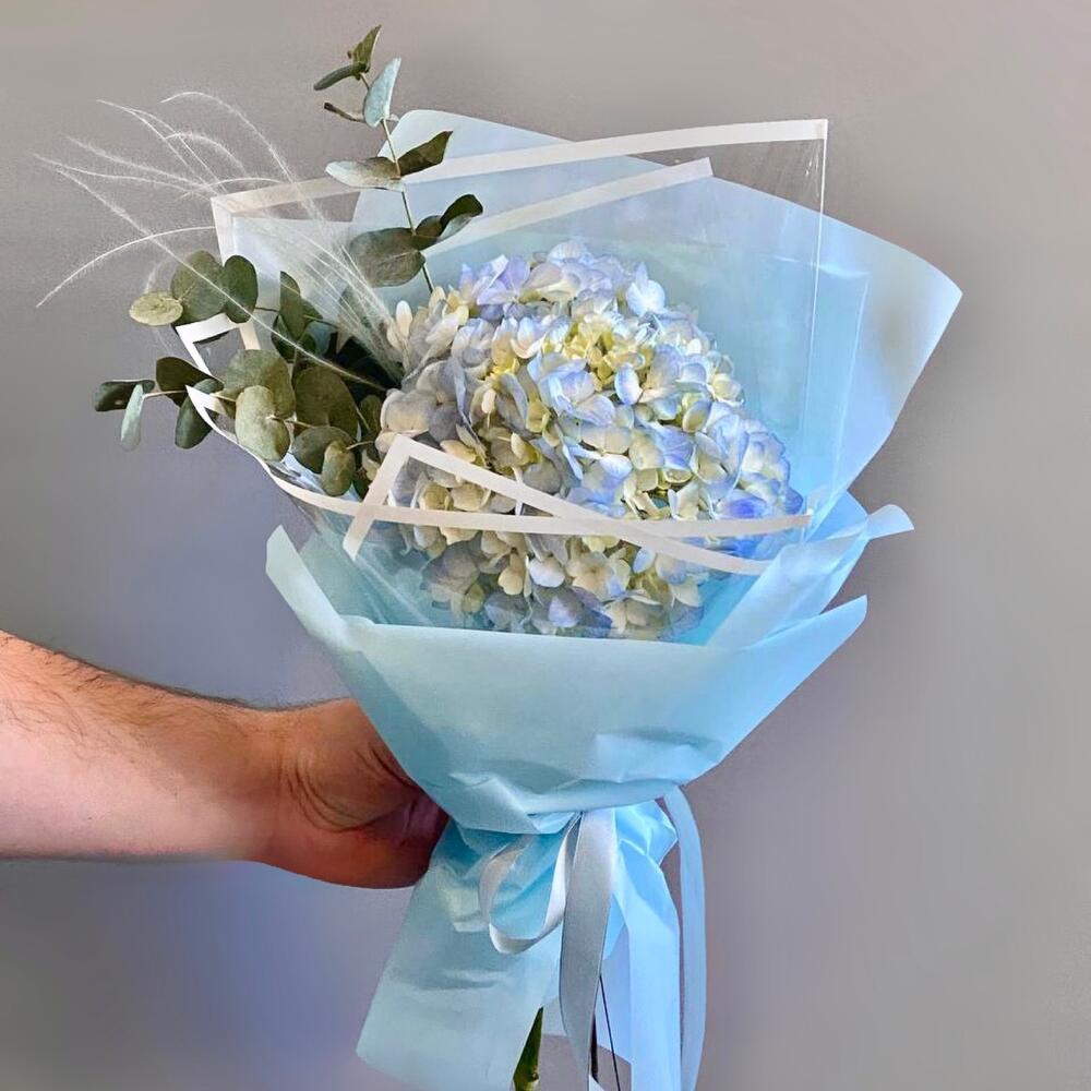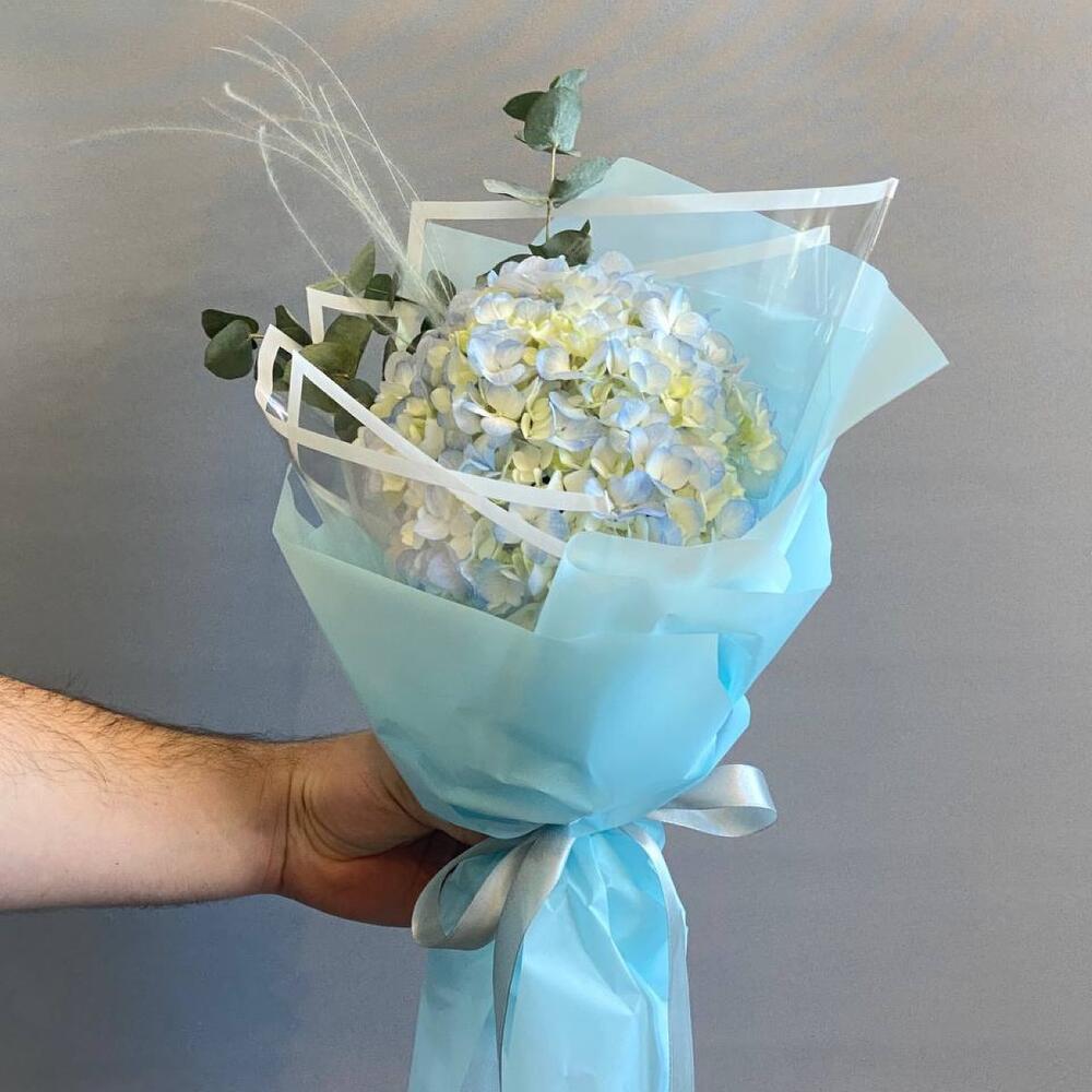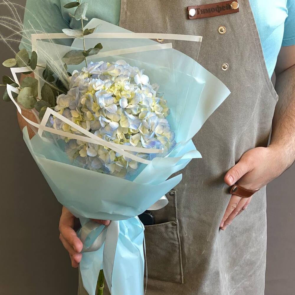 Гортензия – 1 шт.Эвкалипт – 1 шт.Упаковка дизайнерская – 1 шт.Стифа – 1 шт.памятка по уходу и средство для продления жизни цветов – 1 шт.