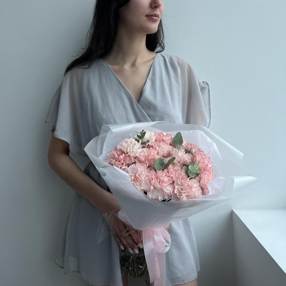 15 розовых гвоздик с эвкалиптом (букет N 26)