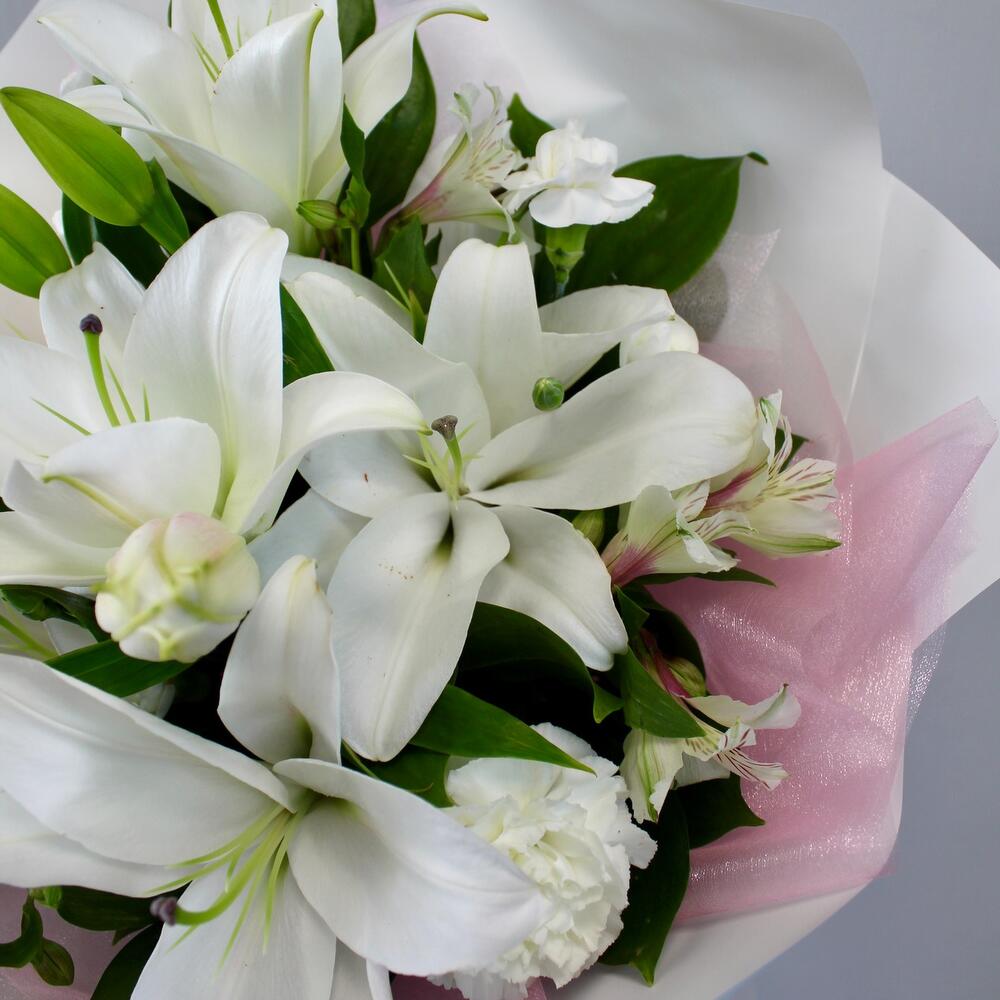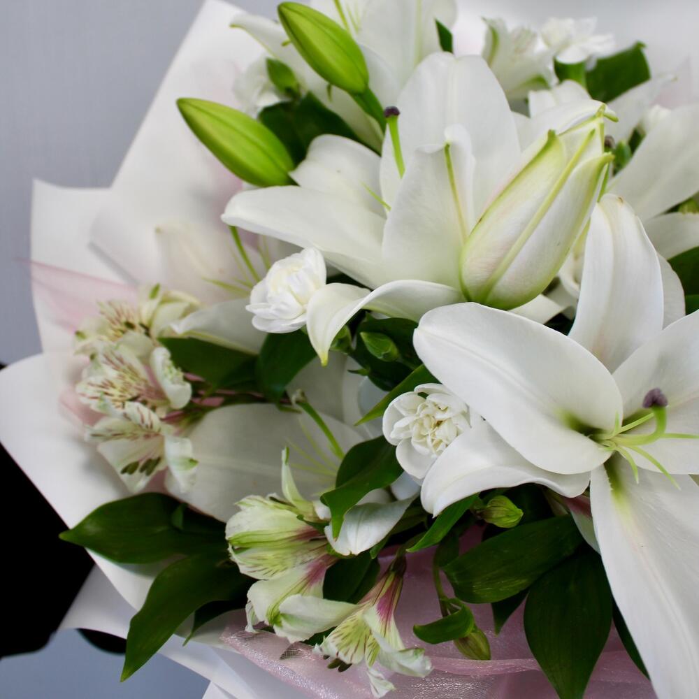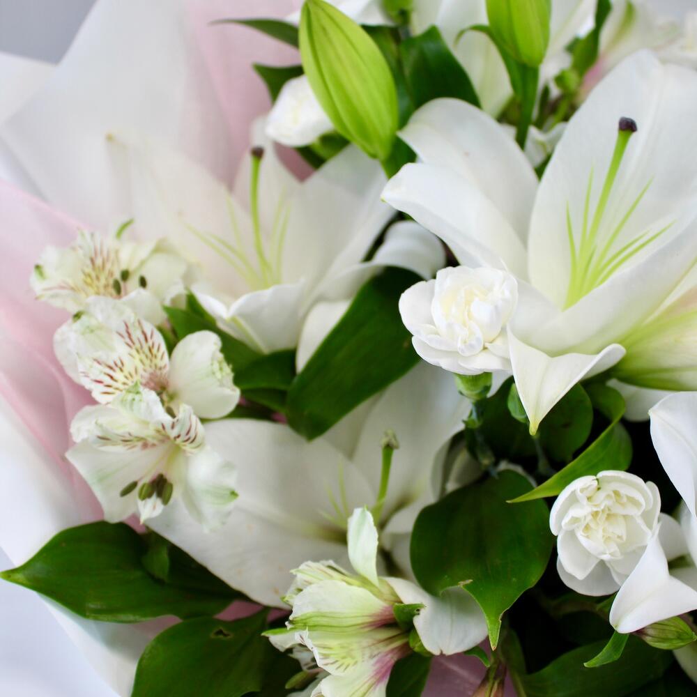 Категории: Альстромерии, Гвоздики, Лилии