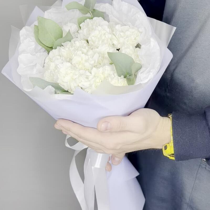 Эвкалипт – 2 шт.Лента атласная – 1 шт.Тишью – 1 шт.Диантус – 15 шт.Упаковка дизайнерская – 1 шт.