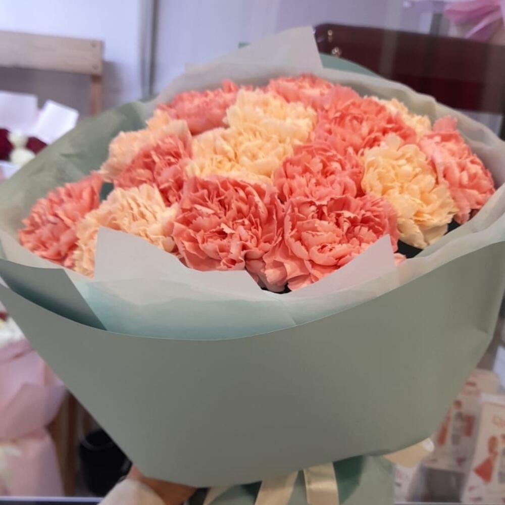11 нежных гвоздик с эвкалиптом