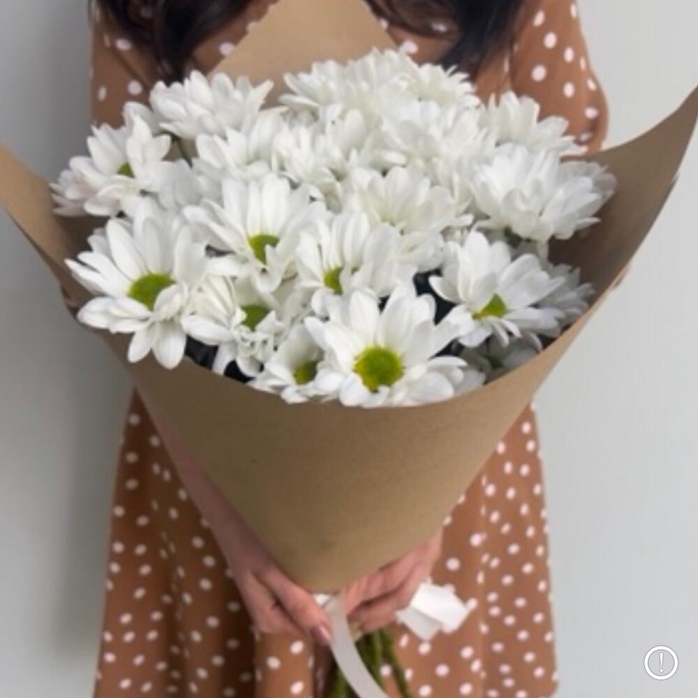 Лента – 1 шт.Хризантема кустовая – 7 шт.Крафт упаковка – 2 шт.