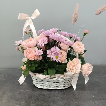 Авторская композиция из шикарных белых французских роз и ромашковых хризантем в изумительной окраске!