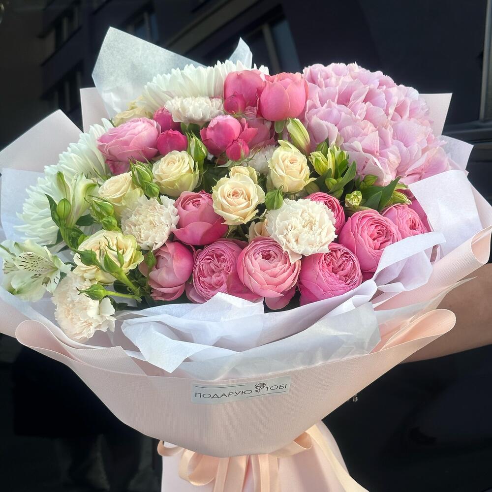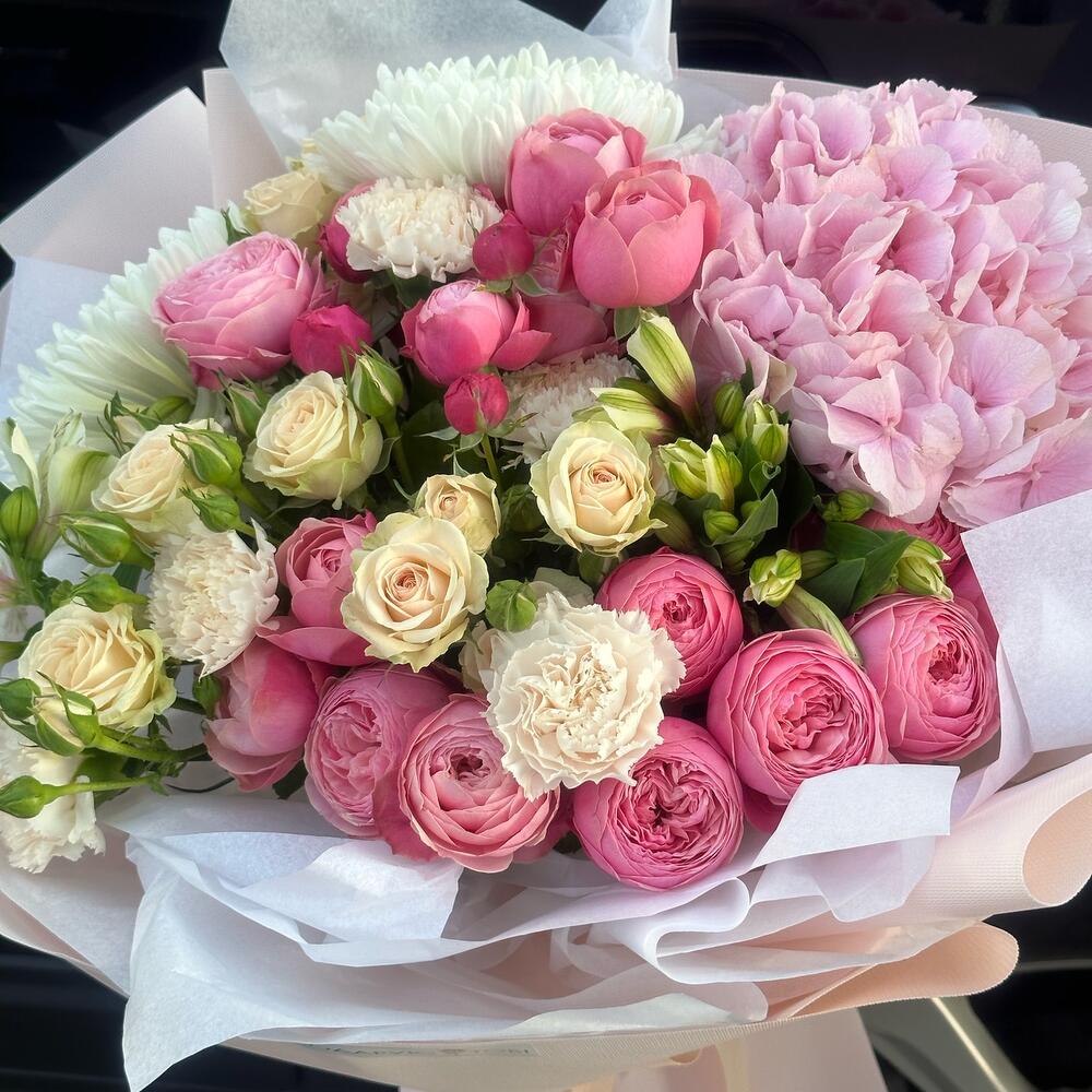 Кустовые розы, Лизиантусы, Пионы, Розы, Хризантемы