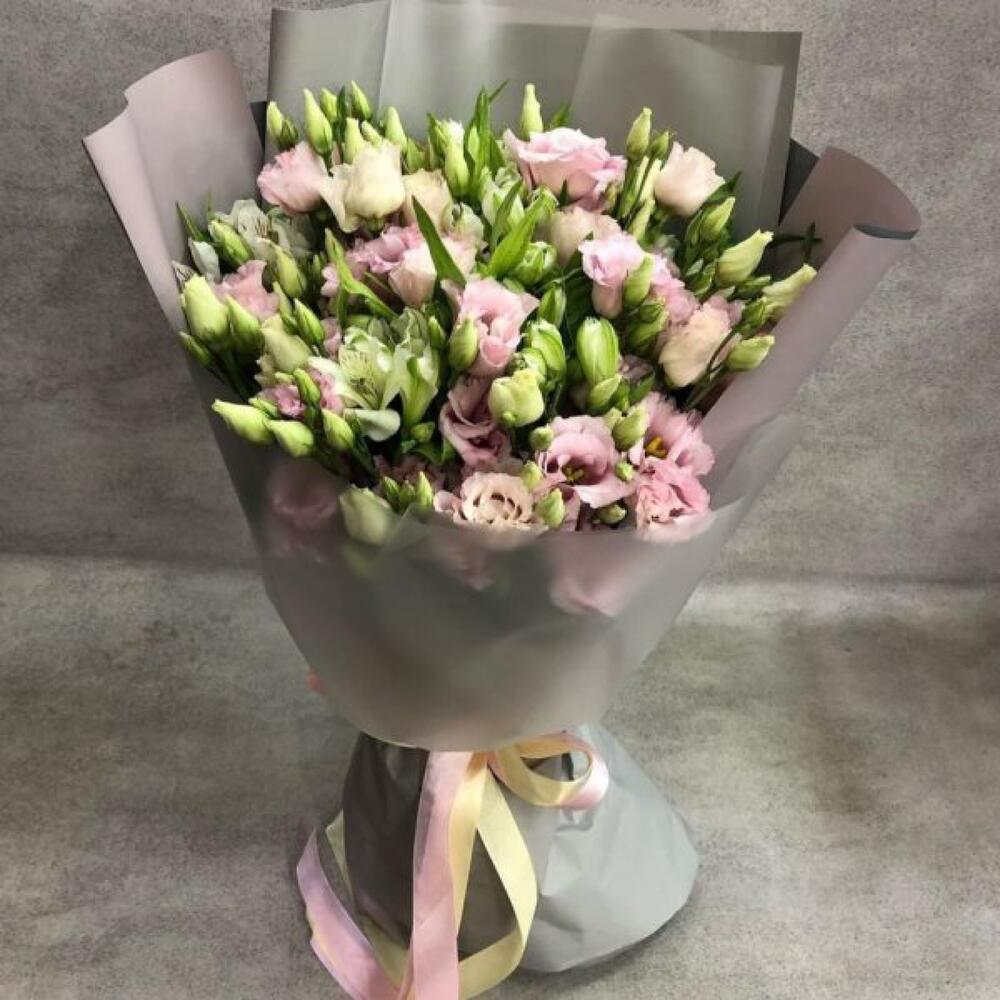 Альстромерии, Гвоздики, Кустовые розы, Лизиантусы, Розы, Хризантемы