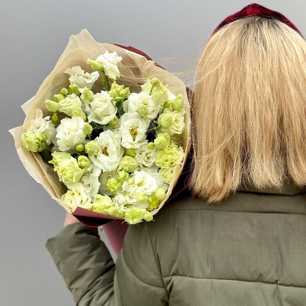 Простой и стильный букет из эустомы.