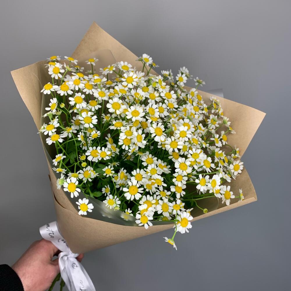 Танацетум – 7 шт.Лента атласная – 1 шт.Крафт – 1 шт.