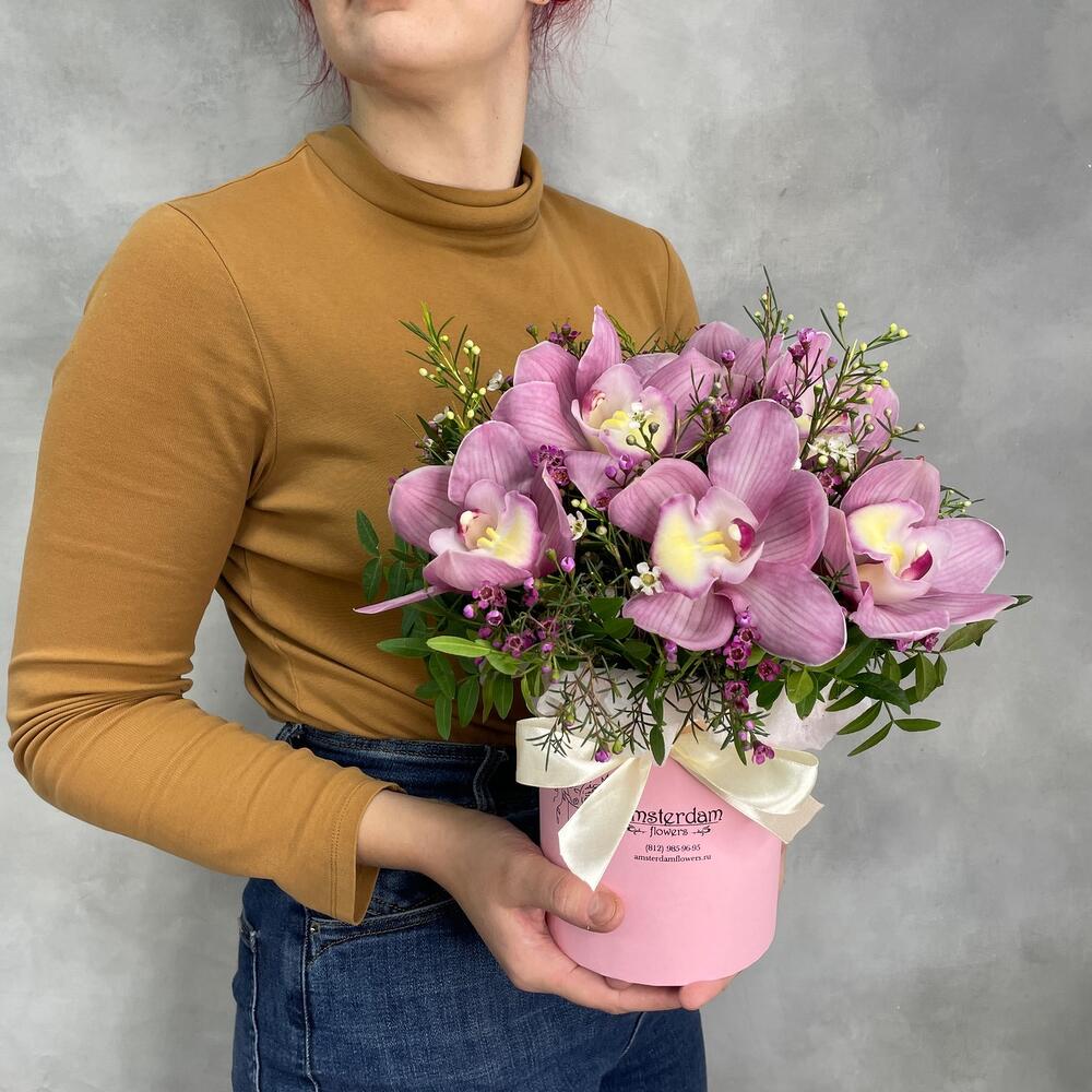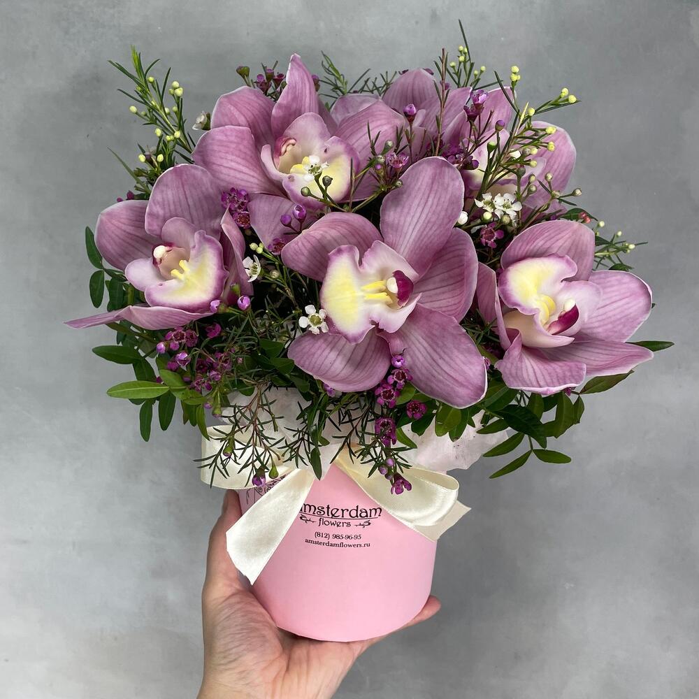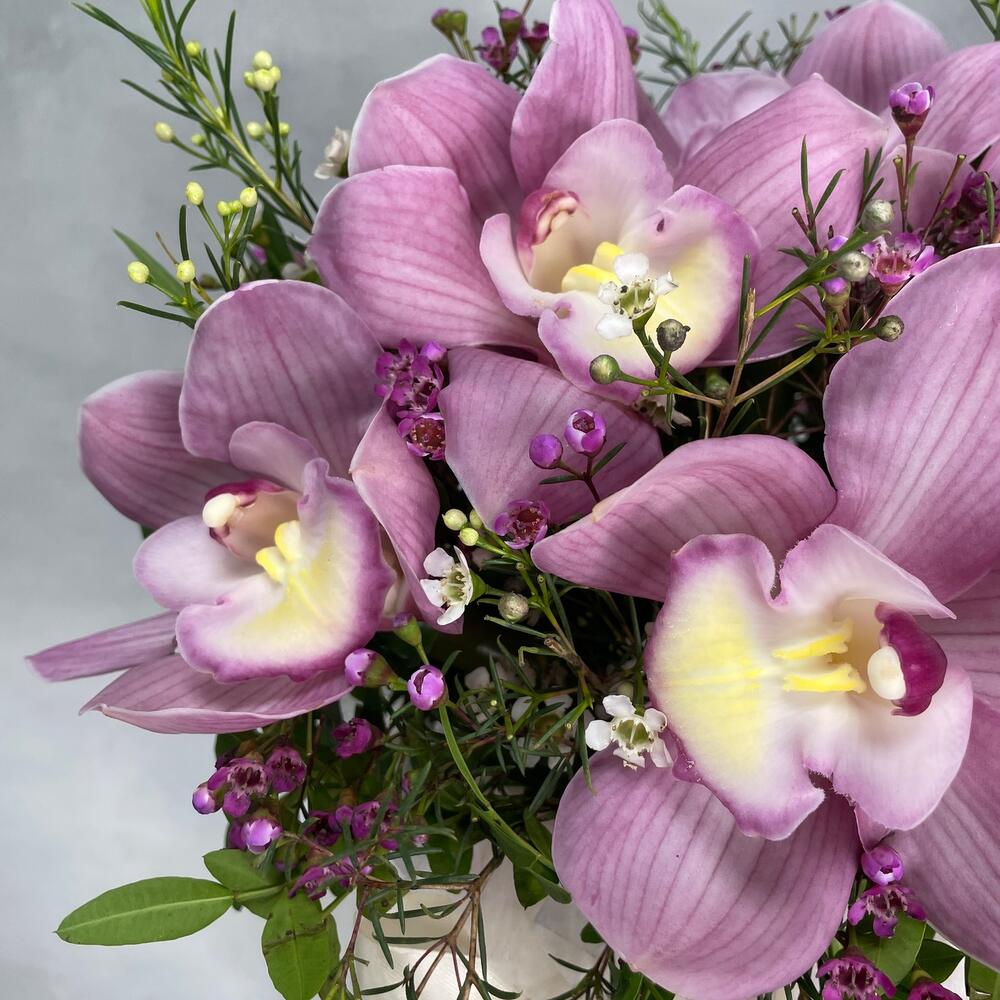 Экзотический букет орхидея и ваксфлауэр