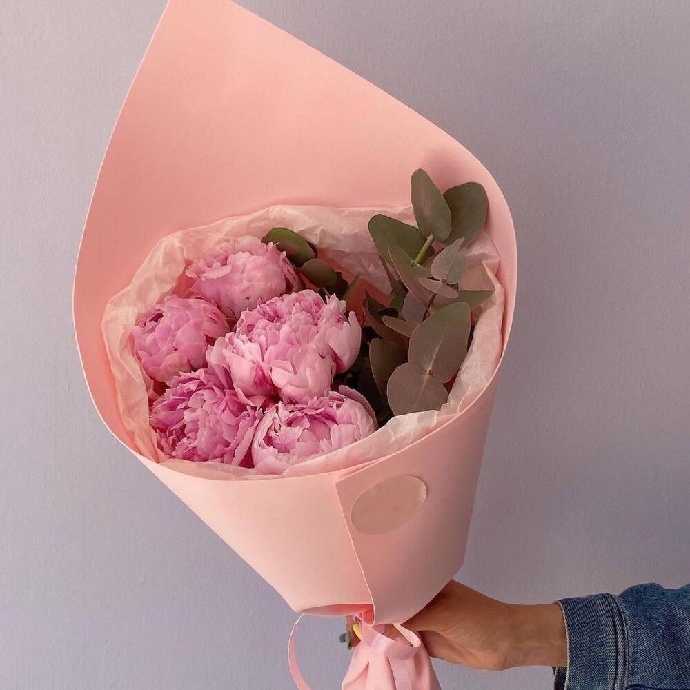 Эвкалипт – 2 шт.Пион Сара Бернар – 5 шт.Авторская упаковка – 1 шт.
