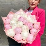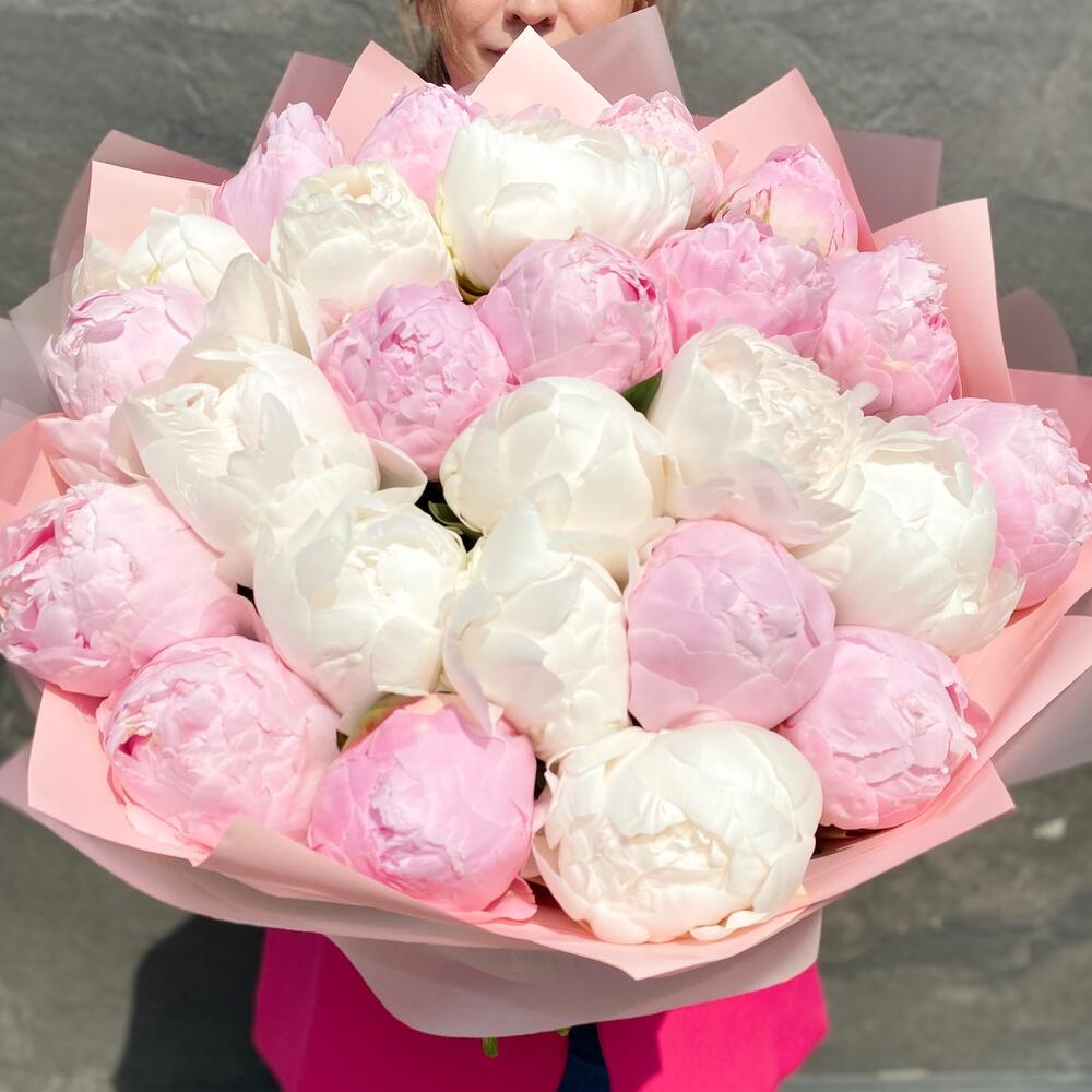 Букет премиум Сливочный пломбир с 25 пионами