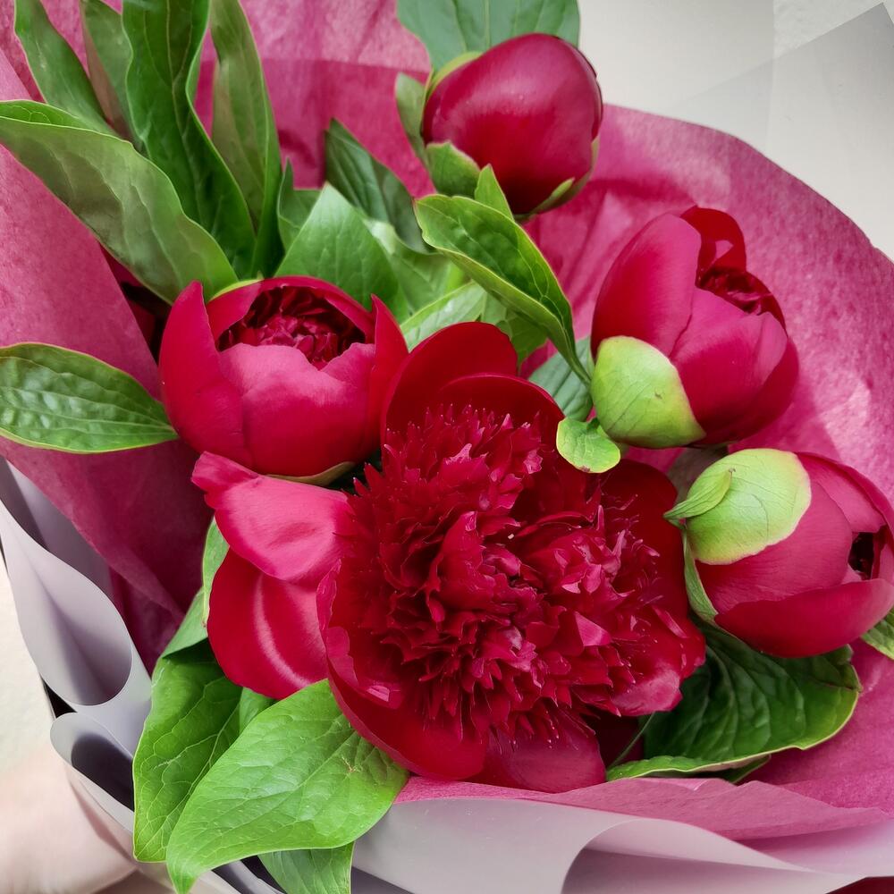 Букет вишнёвых пионов