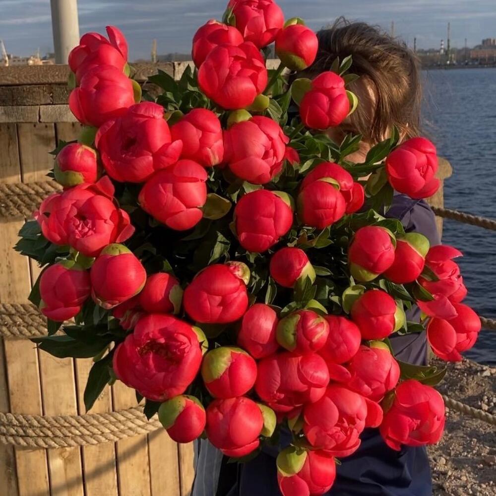 Великолепная охапка коралловых пионов.
