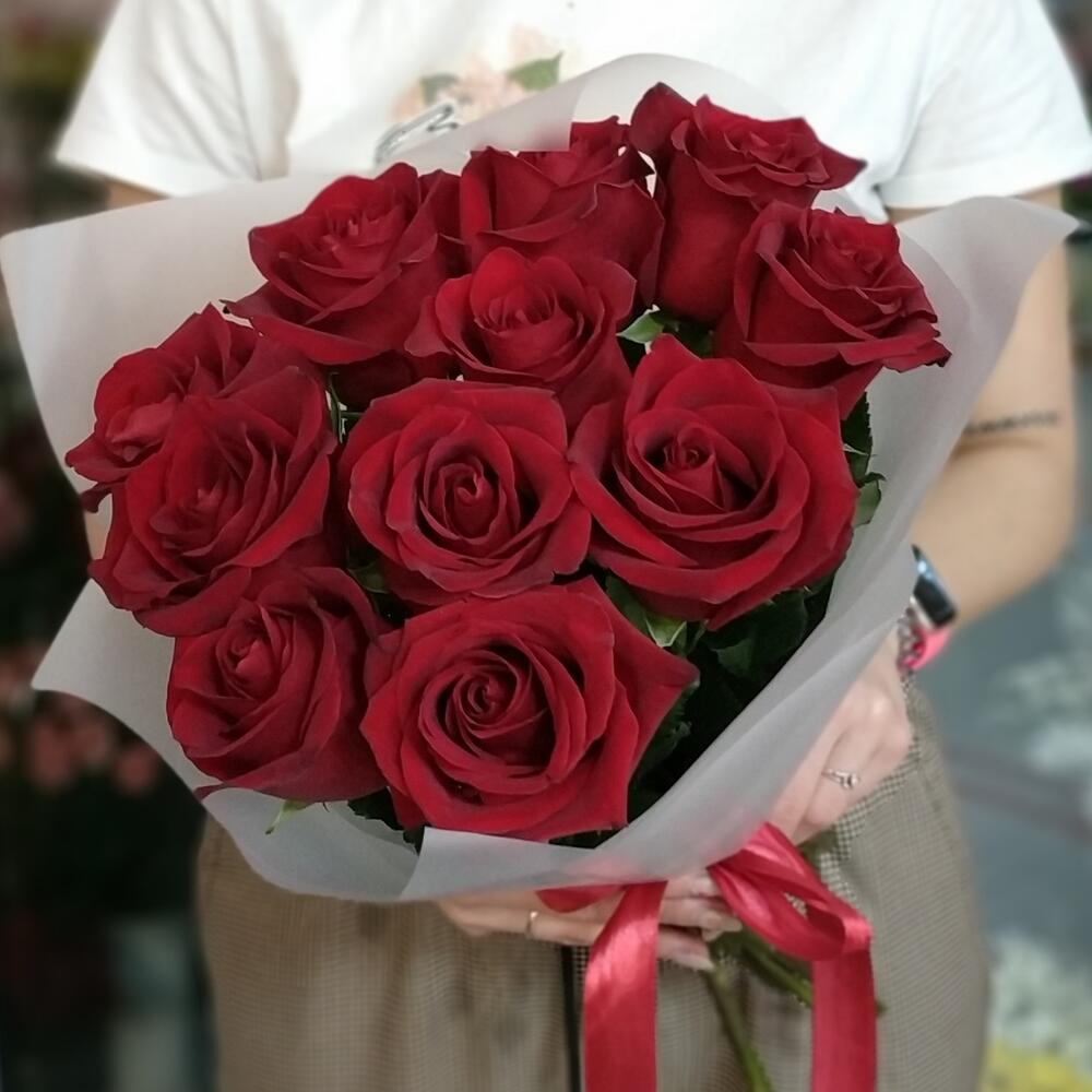 Роза – 11 шт. Лента атласная – 1 шт. Оформление – 1 шт.