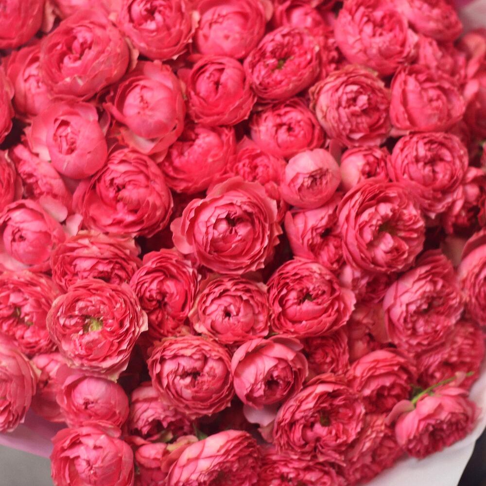 Роза кустовая пионовидная – 25 шт.Упаковка дизайнерская – 8 шт.Лента атласная – 1 шт.