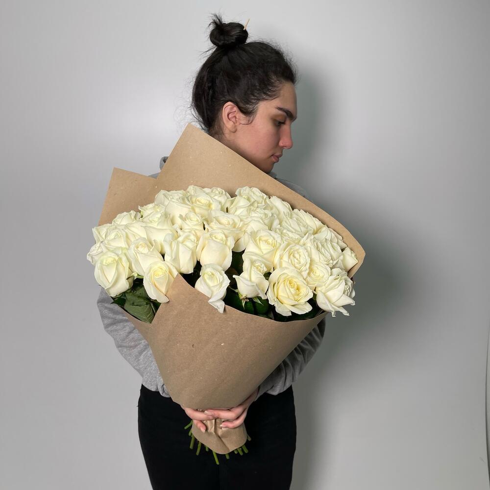 Крафт – 2 шт.Роза белая 50 см – 41 шт.витамины для цветов – 1 шт.