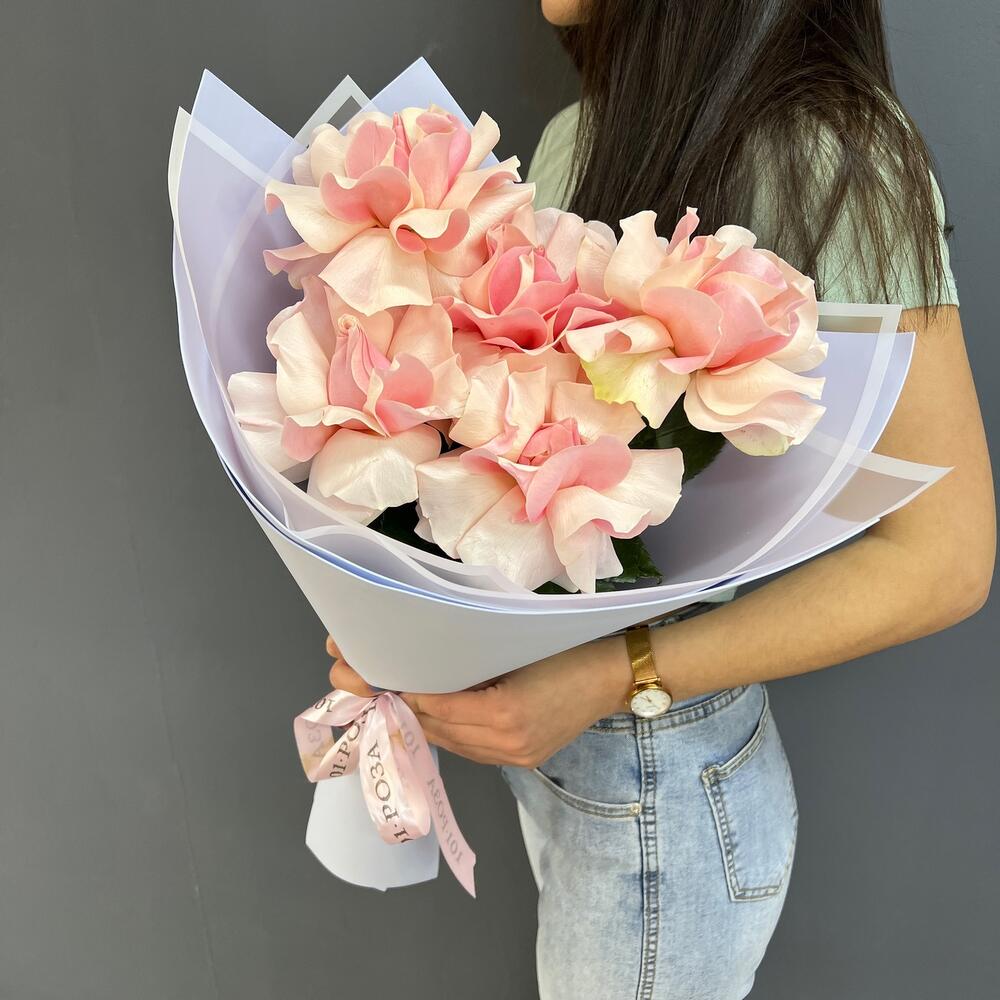 Атласная лента – 1 шт.Французская роза – 5 шт.Дизайнерская упаковка – 1 шт.