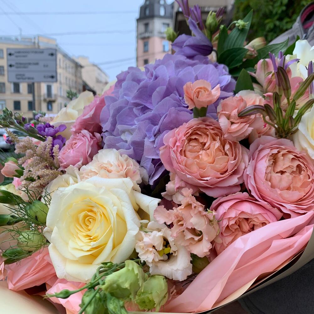 Категорий: Гвоздики, Гортензии, Кустовые розы, Лизиантусы, Пионовидные розы, Розы