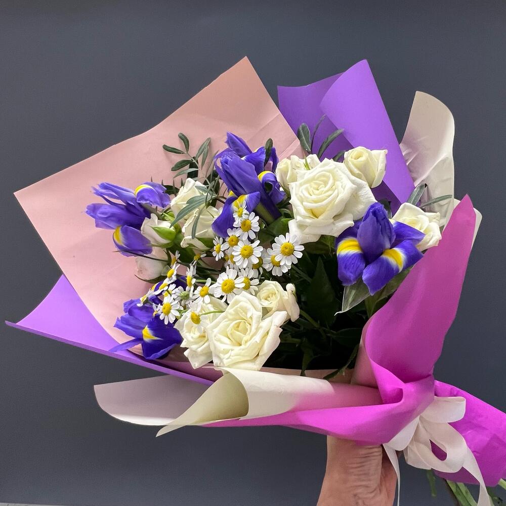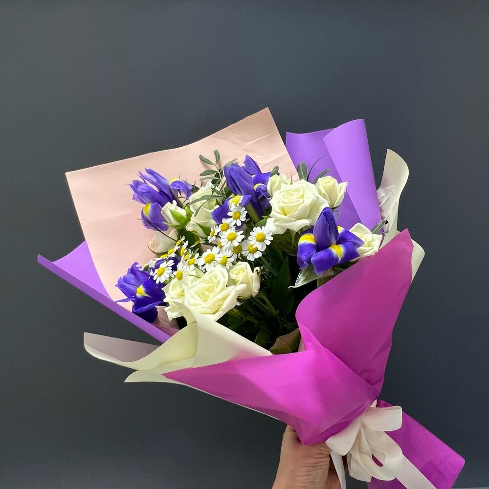 Авторский букет «Ирисы и ромашки»