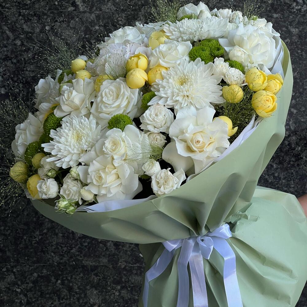 Авторский букет с добавлением жёлтых оттенков