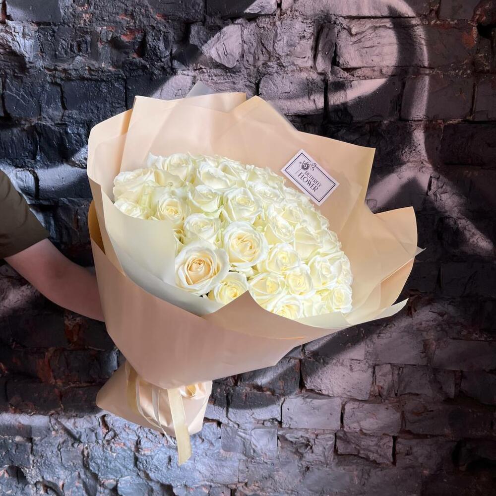 Букет из 35 белых роз в стильной упаковке “Авива”