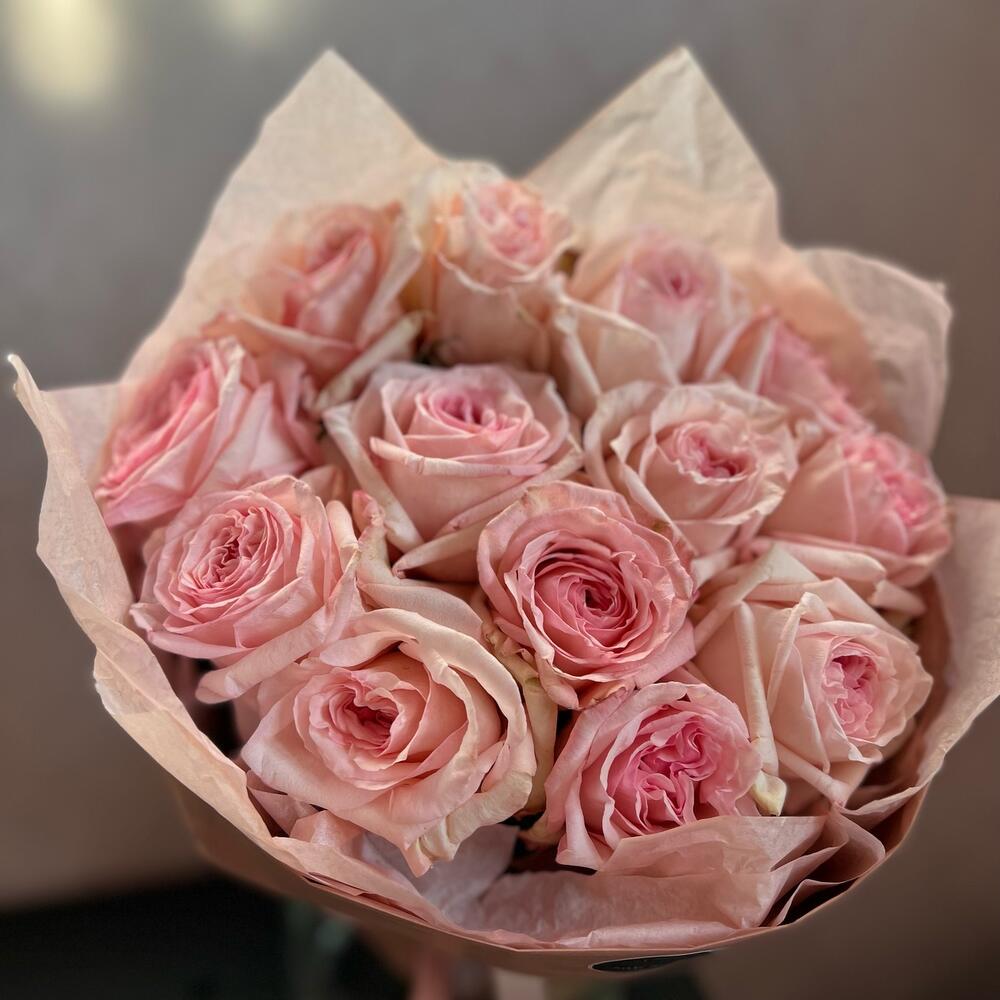 Пионовидная роза – 13 шт.декоративная упаковка – 1 шт.Атласная лента – 1 шт.