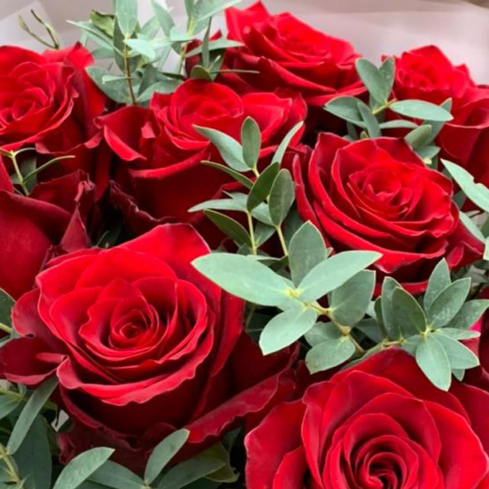 Букет из красных роз и эвкалипта «Боско»