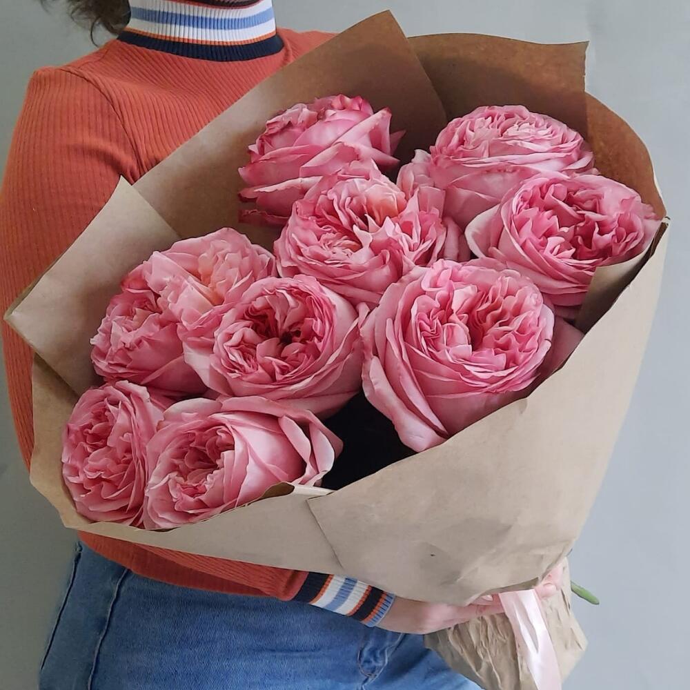 роза пинк экспрешн – 9 шт.Упаковка крафт – 1 шт.Лента атласная – 1 шт.