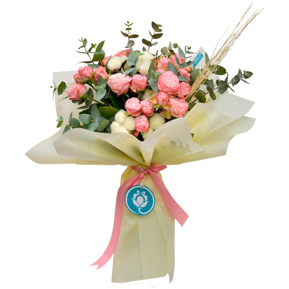 Категории: Букеты с хлопком, Розы, Эвкалипт