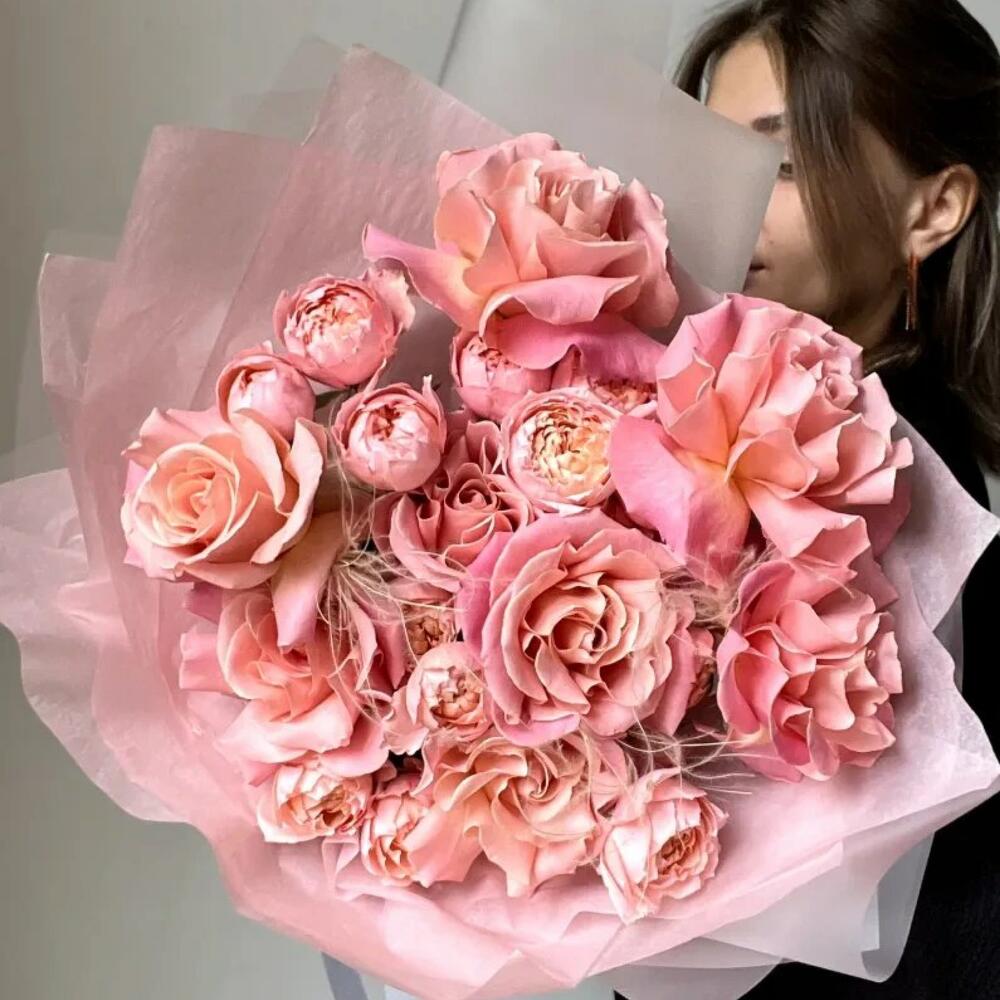 Гвоздики, Кустовые розы, Пионовидные розы, Розы