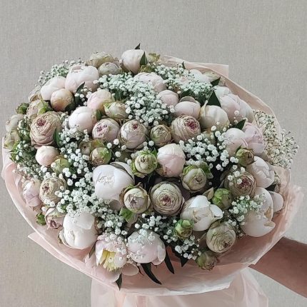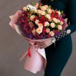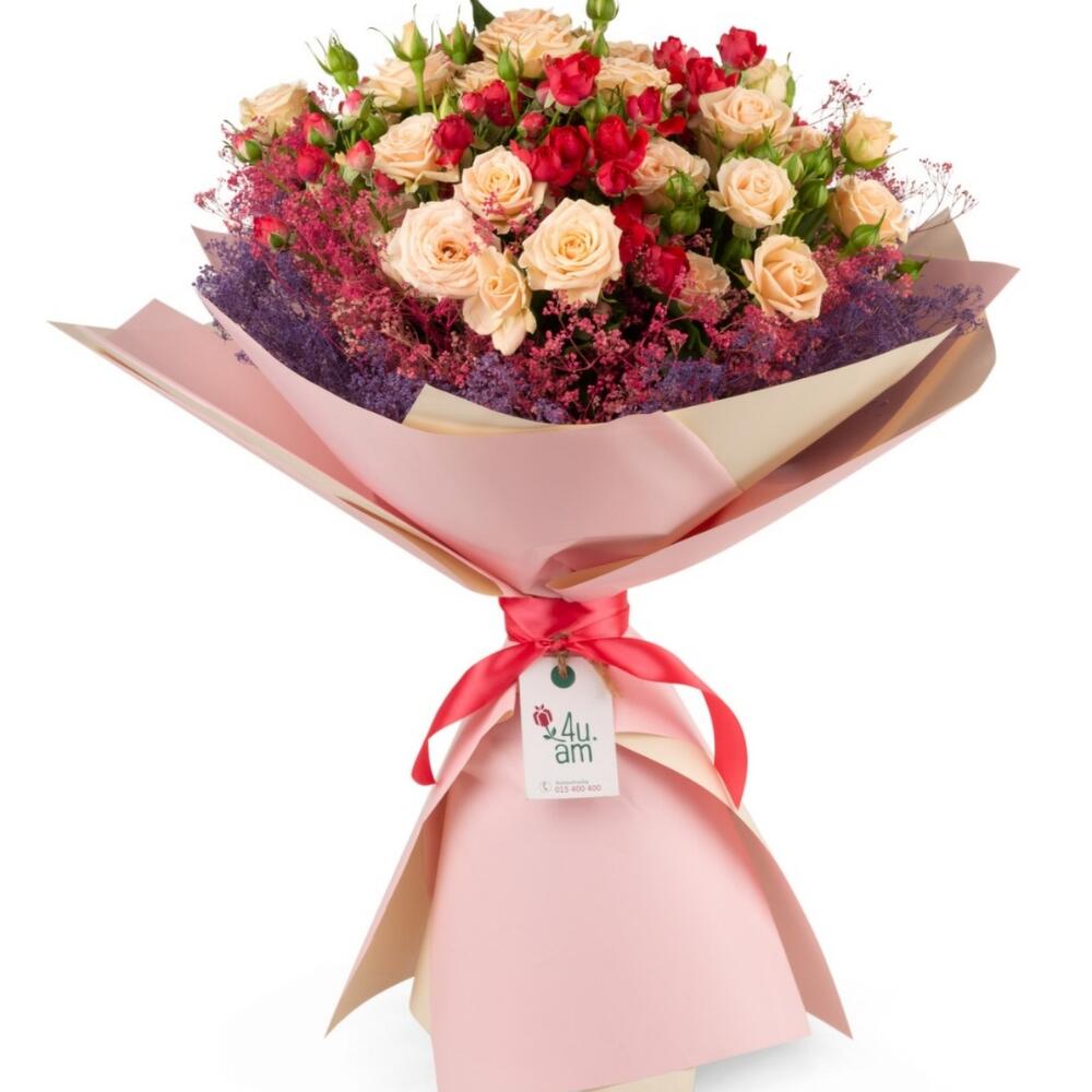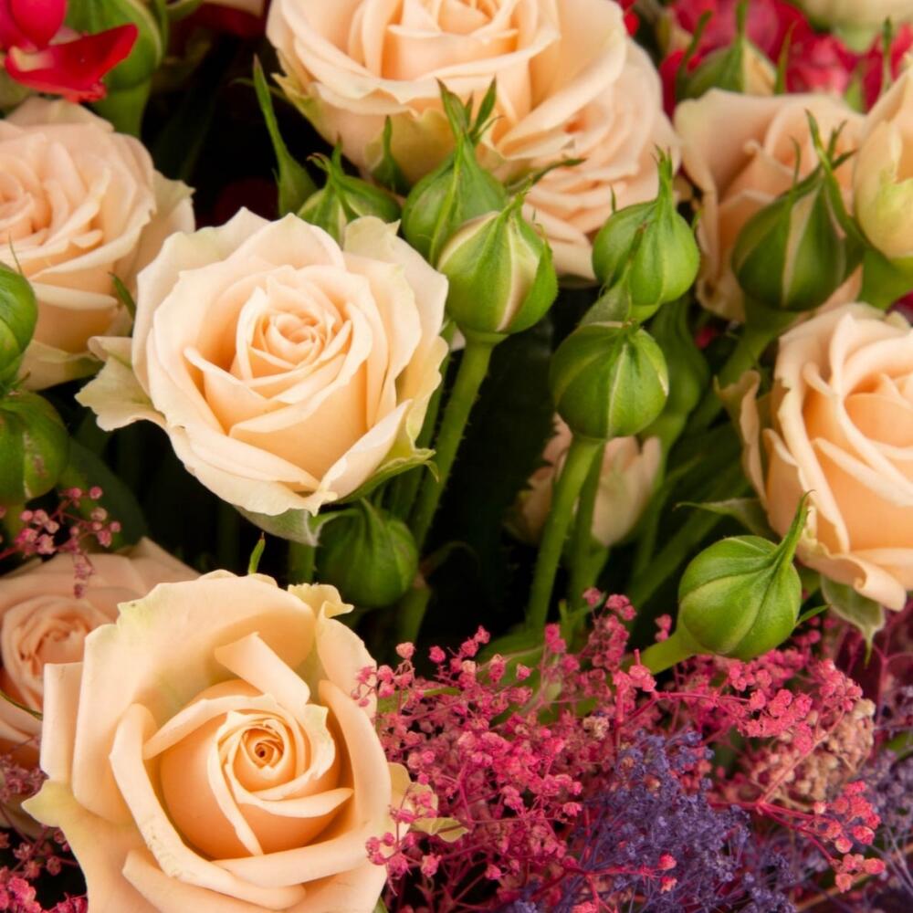 Сухоцветы – 1 шт. кустовые розы – 10 шт.