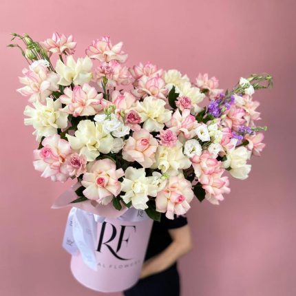 Гвоздики, Кустовые розы, Лизиантусы, Пионовидные розы, Розы