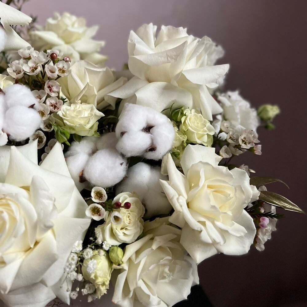 Белые сочетания в стильной шляпной коробке – это практичный и интересный подарок для любого праздничного события. Воздушная ассиметричная сборка и текстурные цветы создают объемную композицию, которая воодушевляет и дарит эстетическое удовольствие.Доставим быстро и бережно.* … Показать ещёК сожалению, мы не можем гарантировать 100% копию букета. Ежедневно к нам в салон приезжают свежие цветы и они могут отличаться друг от друга. Со своей стороны, мы гарантируем соблюсти состав и общий стиль вашего букета. При возникновении вопроса о замене дизайнерской упаковки – мы обязательно свяжемся с вами. Букет из живых цветов мы начинаем собирать после оформления заказа.