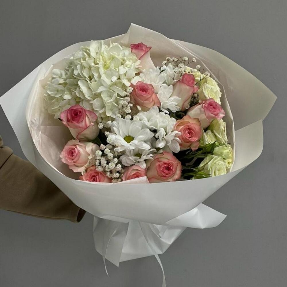 Альстромерии, Кустовые розы, Лизиантусы, Пионовидные розы, Розы, Ромашки