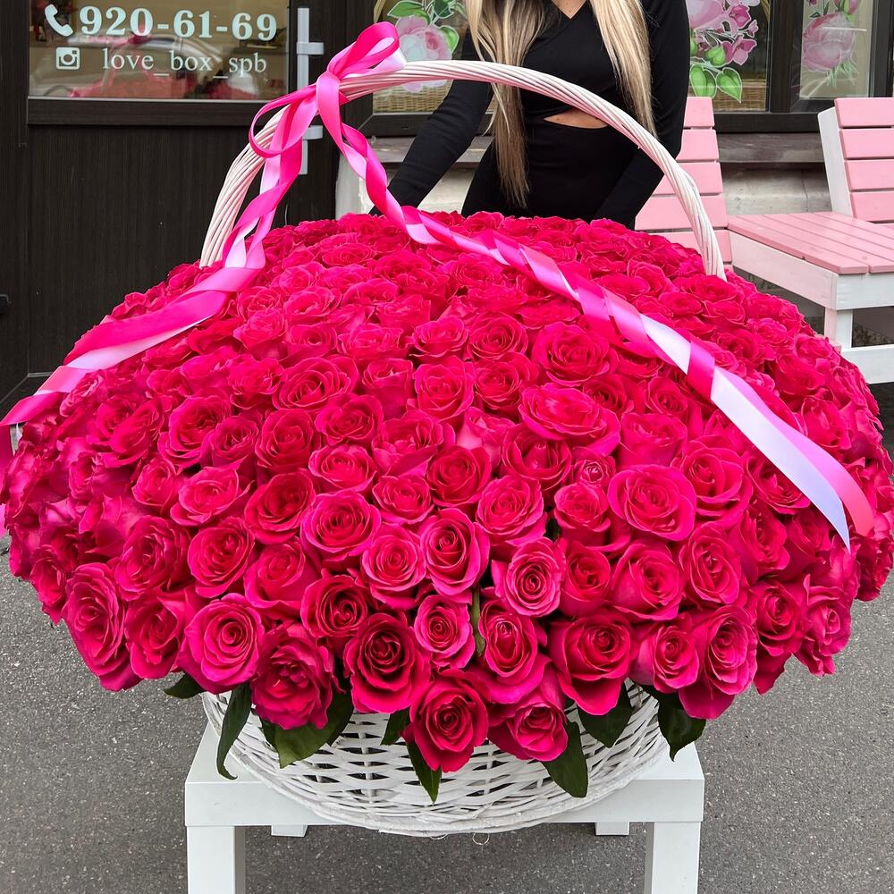 Роза Эквадор – 351 шт.Корзина плетеная – 1 шт.