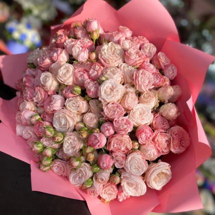 Кустовая роза – 5 шт. Открыточка с вашими пожеланиями – 1 шт. Упаковка дизайнерская – 1 шт.