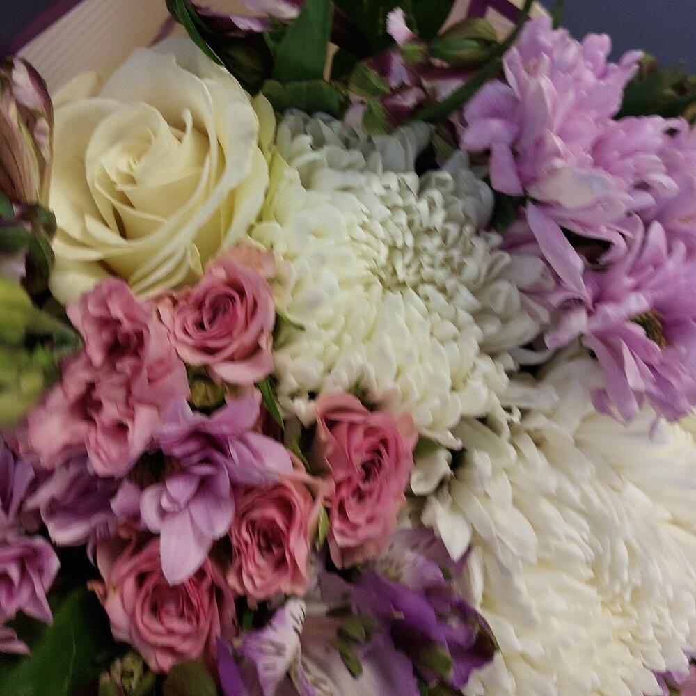 Категорий: Альстромерии, Кустовые розы, Лизиантусы, Розы, Хризантемы