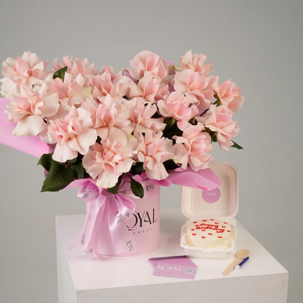 “Атлас☁️” – цветочная композиция с зефиром в деревянном ящике