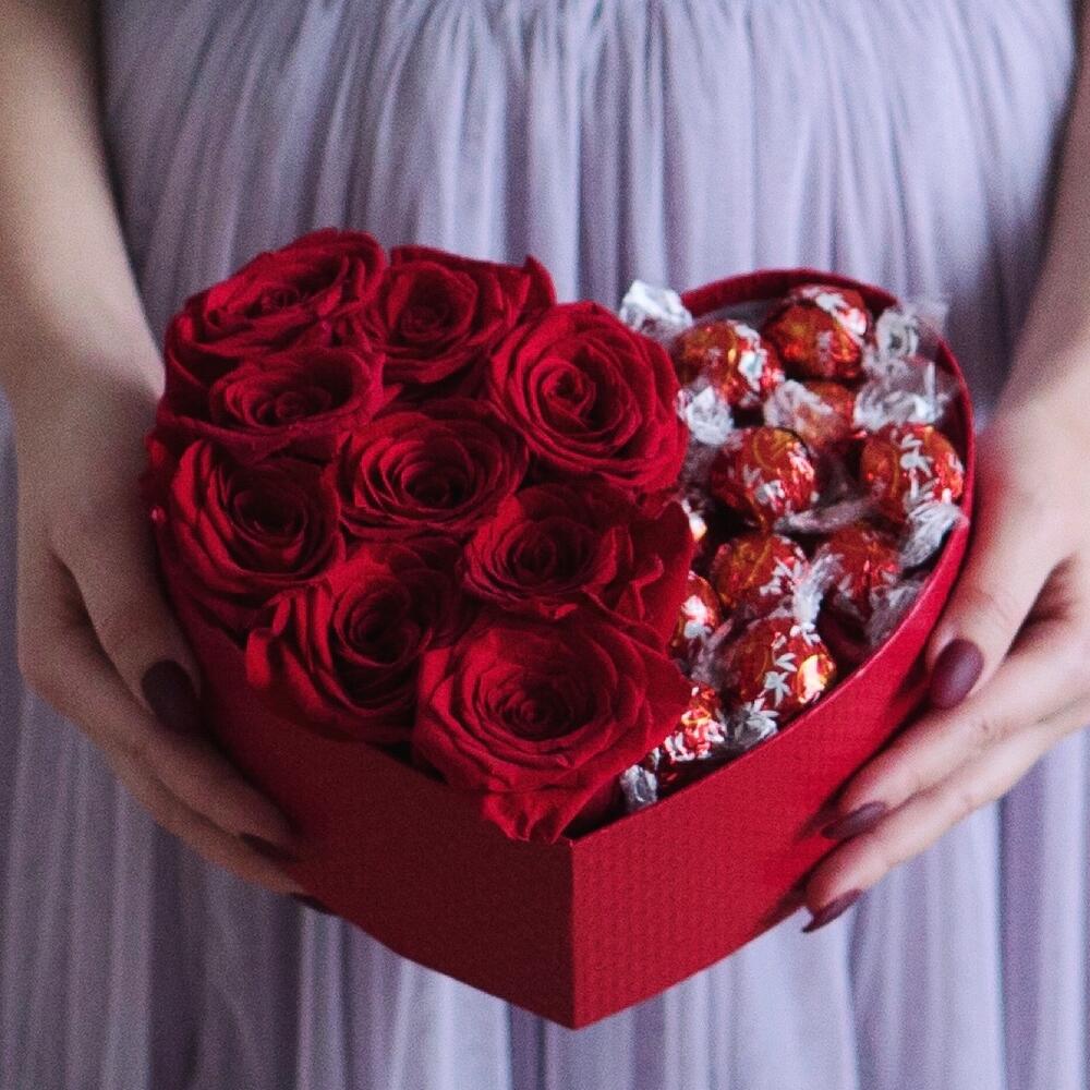 Коробка из 9 роз с конфетами